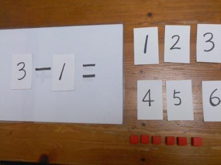 はじめの数字カードの下に同じ数のつみきを置かせます。