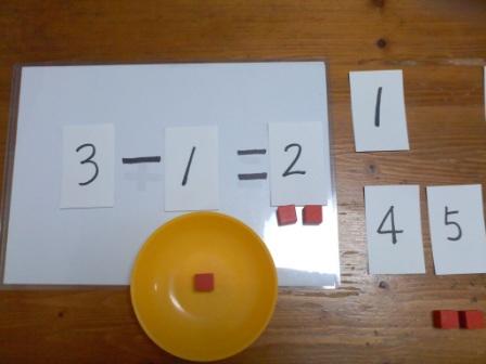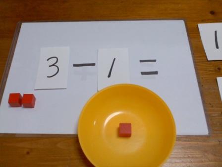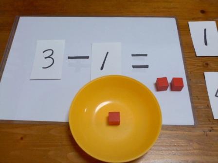 次に、引く数だけのつみきを左端からお皿に移動させます。