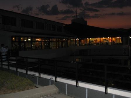 部屋から海が見えますが、上の写真はテラスから夕闇の食堂です。