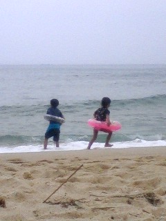 浜辺で貝を拾ったり、露天風呂(無料)に入ったりしました。